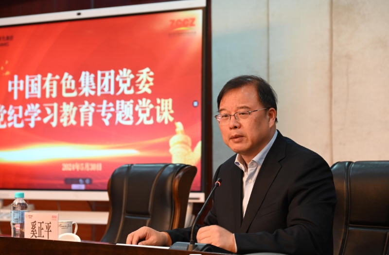 5月30日,中國有色集團黨委舉辦黨紀學習教育專題黨課會議。黨委書記、董事長奚正平以《知行知止 知止而行 為當好“兩個主力軍”提供堅強紀律保障》為題,結合所學所思所悟,為廣大黨員干部講授黨紀學習教育專題黨課。他強調,要深入學習領會習近平總書記關于加強黨的紀律教育的重要論述,全面深刻把握黨的“六大紀律”主旨要義和規定要求,切實把黨紀學習成效轉化為集團公司高質量發展成果。