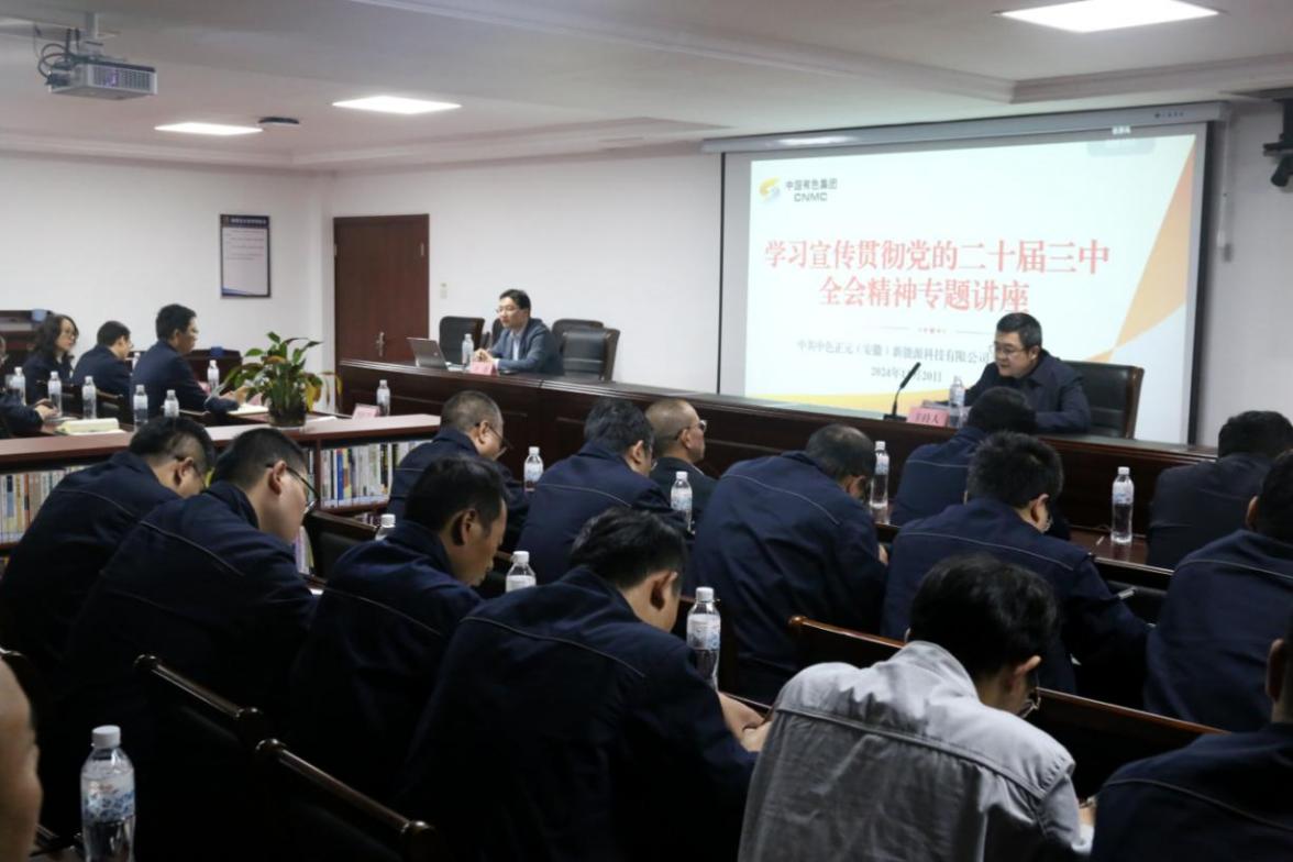 為深入學(xué)習(xí)宣傳貫徹黨的二十屆三中全會精神,準(zhǔn)確把握全會精神實(shí)質(zhì)和豐富內(nèi)涵,推動各項(xiàng)貫徹落實(shí)工作走深走實(shí),11月20日,中國有色集團(tuán)出資企業(yè)中色正元(安徽)新能源科技有限公司(簡稱:中色正元)黨委邀請中共中央黨校(國家行政學(xué)院)法學(xué)博士、中共安徽省委黨校(安徽行政學(xué)院)副教授于德作專題輔導(dǎo)講座。