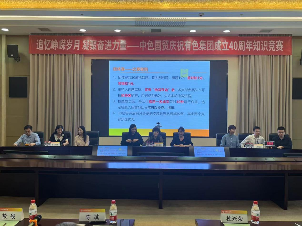 ??????9月27日,為慶祝集團(tuán)公司成立40周年,結(jié)合深入開展學(xué)習(xí)貫徹習(xí)近平新時(shí)代中國(guó)特色社會(huì)主義思想主題教育,中國(guó)有色集團(tuán)出資企業(yè)中色國(guó)際貿(mào)易有限公司(簡(jiǎn)稱:中色國(guó)貿(mào))舉行“追憶崢嶸歲月、凝聚奮進(jìn)力量”主題知識(shí)競(jìng)賽活動(dòng),通過組織黨建知識(shí)、集團(tuán)歷史、公司歷史競(jìng)賽,夯實(shí)堅(jiān)定擁護(hù)“兩個(gè)確立”、堅(jiān)決做到“兩個(gè)維護(hù)”的思想根基,追憶集團(tuán)公司四十年櫛風(fēng)沐雨、篳路藍(lán)縷的創(chuàng)業(yè)歷程,樹牢公司黨員新時(shí)代積極上進(jìn)、實(shí)干興企的干事意識(shí)。