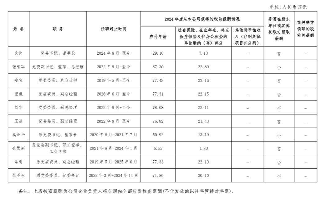 中國(guó)有色礦業(yè)集團(tuán)有限公司企業(yè)負(fù)責(zé)人2024年度薪酬情況