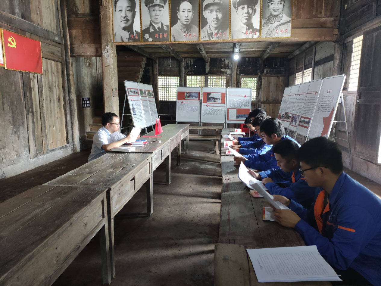 中色十五冶武漢公司項(xiàng)目黨支部書(shū)記在紅色教育基地為支部黨員講黨課,號(hào)召黨員干部傳承發(fā)揚(yáng)紅色基因。